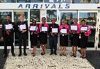 Just before you enter the Arrivals Hall, you will be greeted by a Five Star Fast Track Representative elegantly dressed in pink and black, with personalized signage.