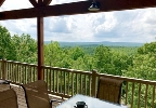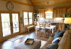 Cabin 7 is a 2,000 sq ft retreat for up to 12 guests, featuring three bedrooms with private baths, a full kitchen, spacious living and dining areas, and a screened west-facing deck.