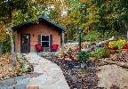 A peaceful 540 sq ft retreat for two, the Love Cabin features one bedroom, one bath, a full kitchen, washer/dryer, a 40″ TV with Dish, and a welcoming gas fireplace.